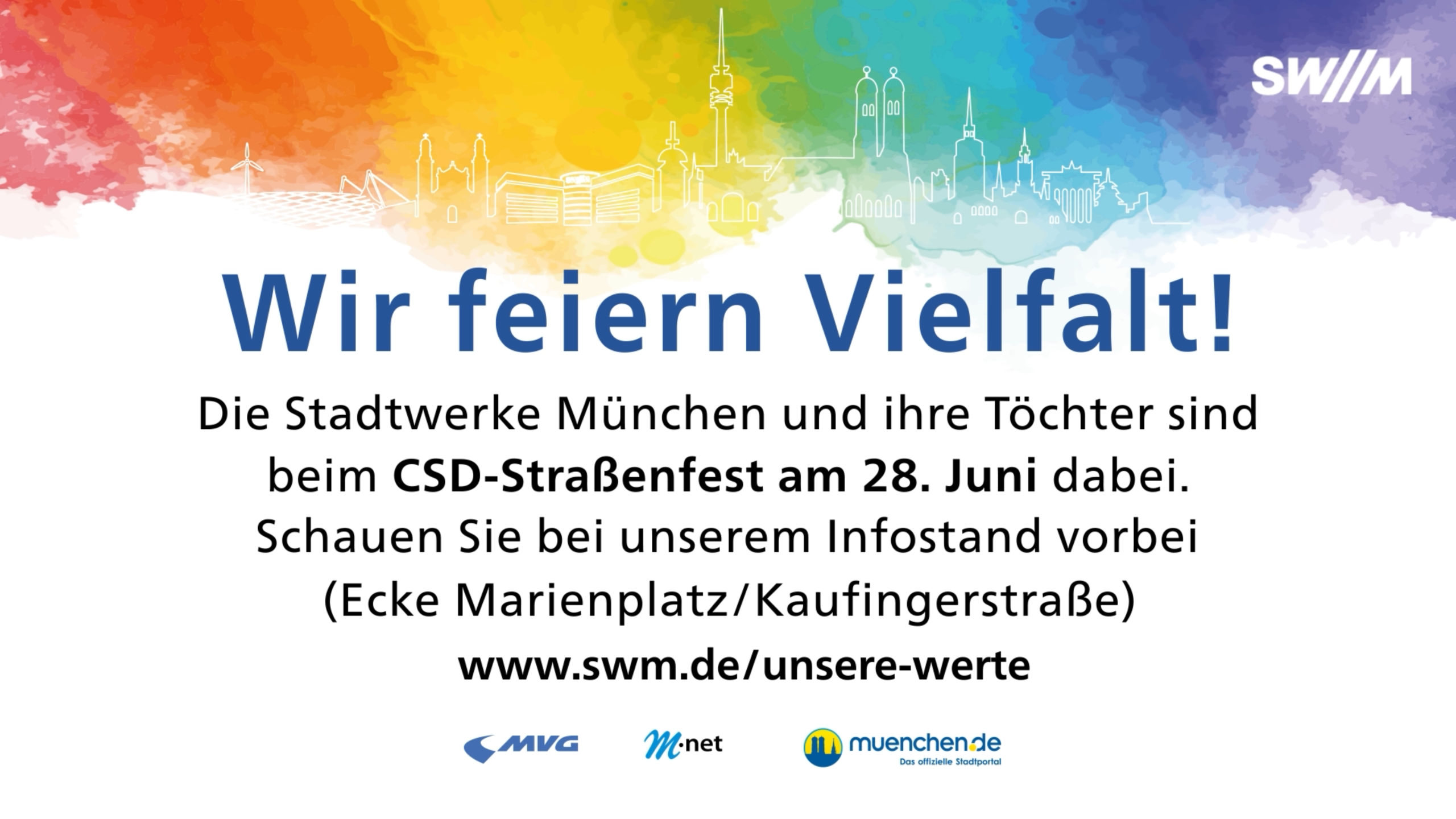 Animierte LED-Screen Inhalte für die Stadtwerke München zum Christopher Street Day 2025. Klare Bildsprache, starke Farben und eine deutliche Haltung für Vielfalt im urbanen Raum.