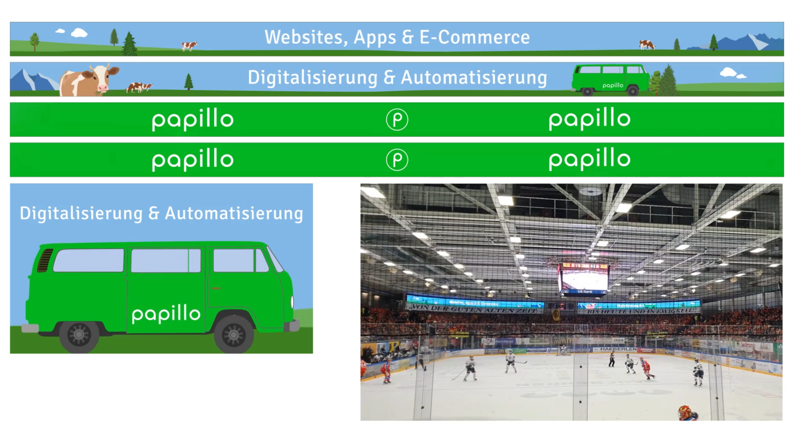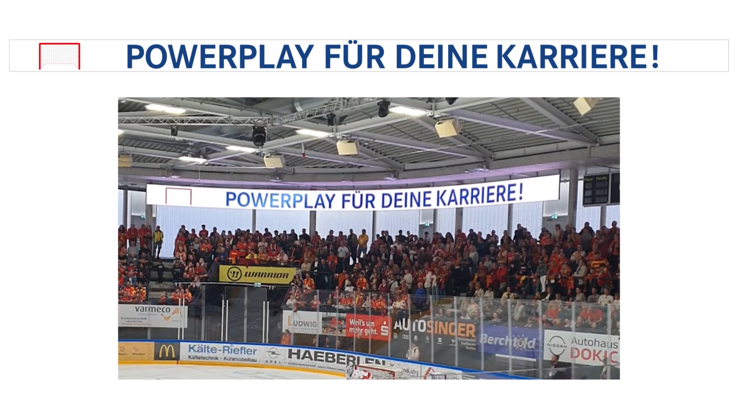 Anlässlich der DEL2 Saison 2025/26 animierten wir für unsere Partneragentur papillo – digital solutions einen LED-Spot, bei dem ihr Signature-Bus scheinbar einmal um das Stadion fährt. Durch das exakte Timing über vier LED-Streifen entlang der Zuschauertribüne entstand der Eindruck einer durchgehenden Bewegung rund um die Arena.